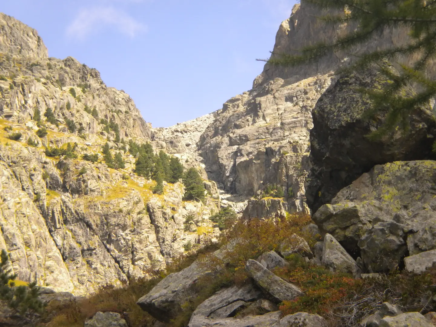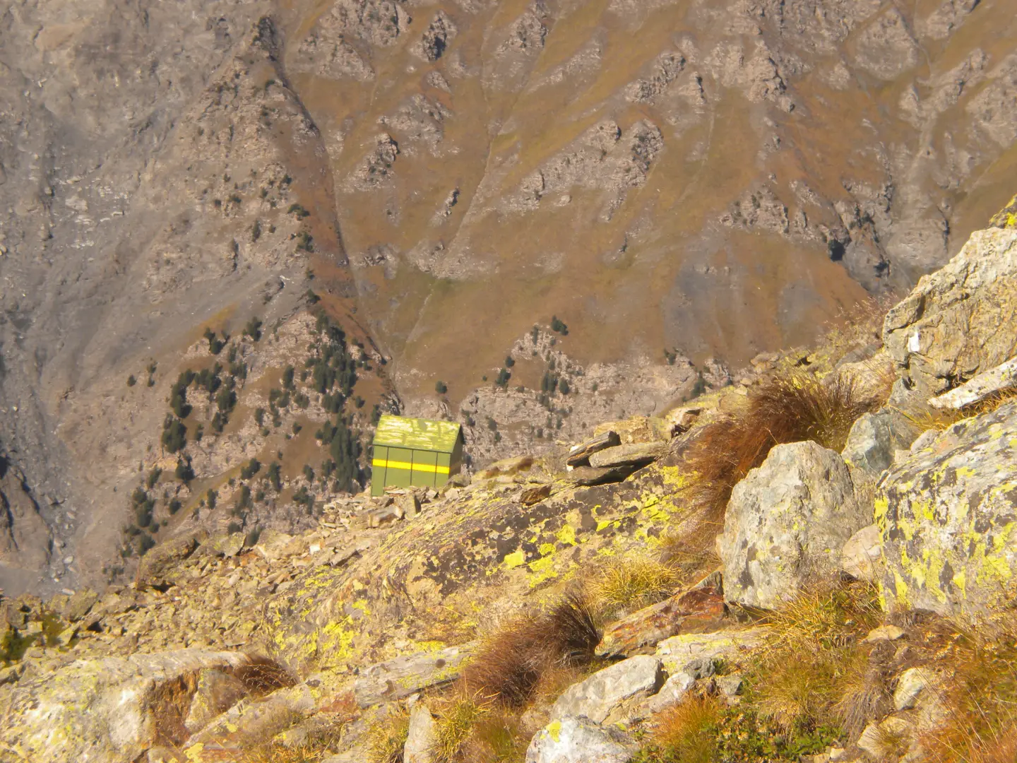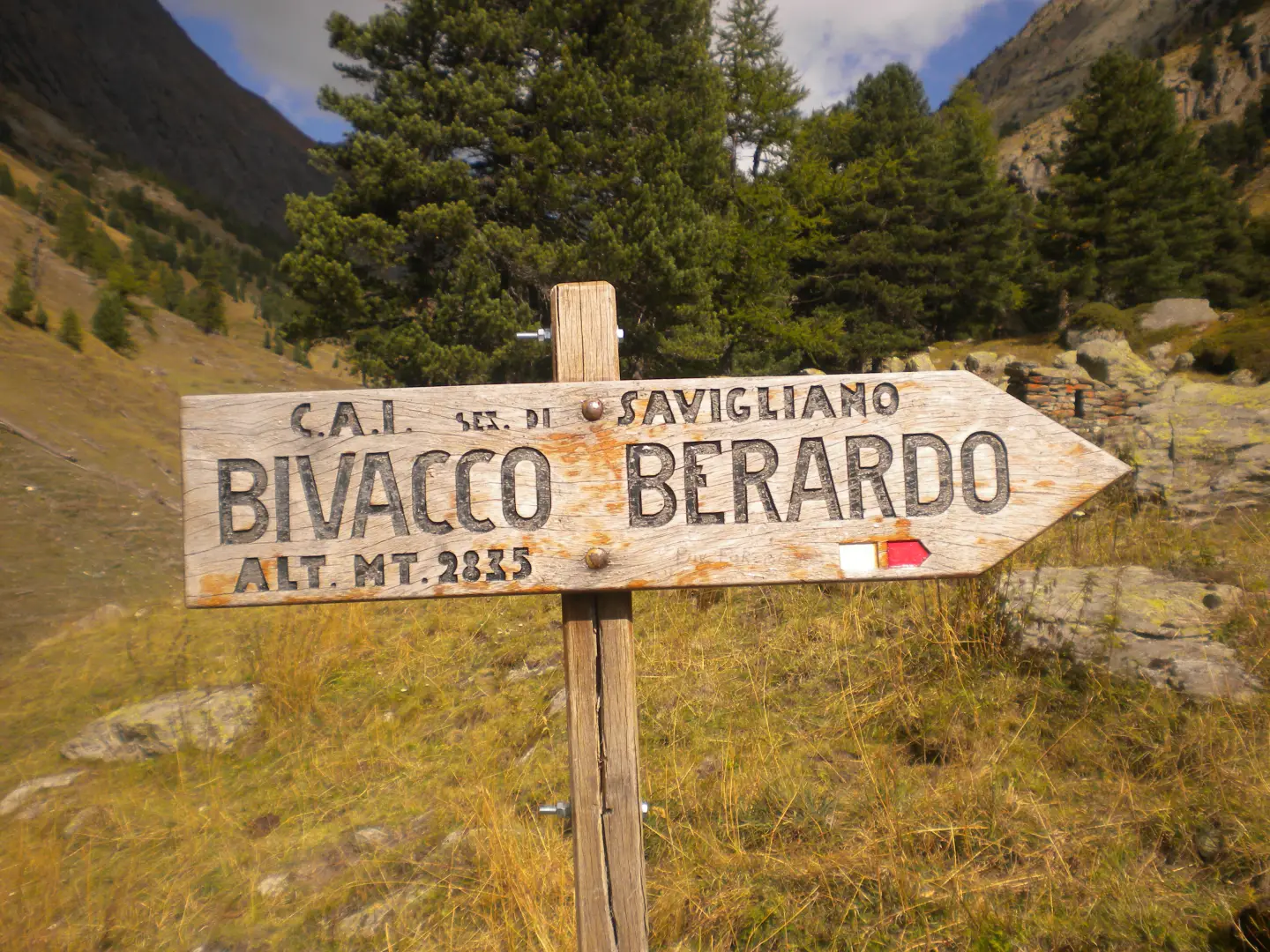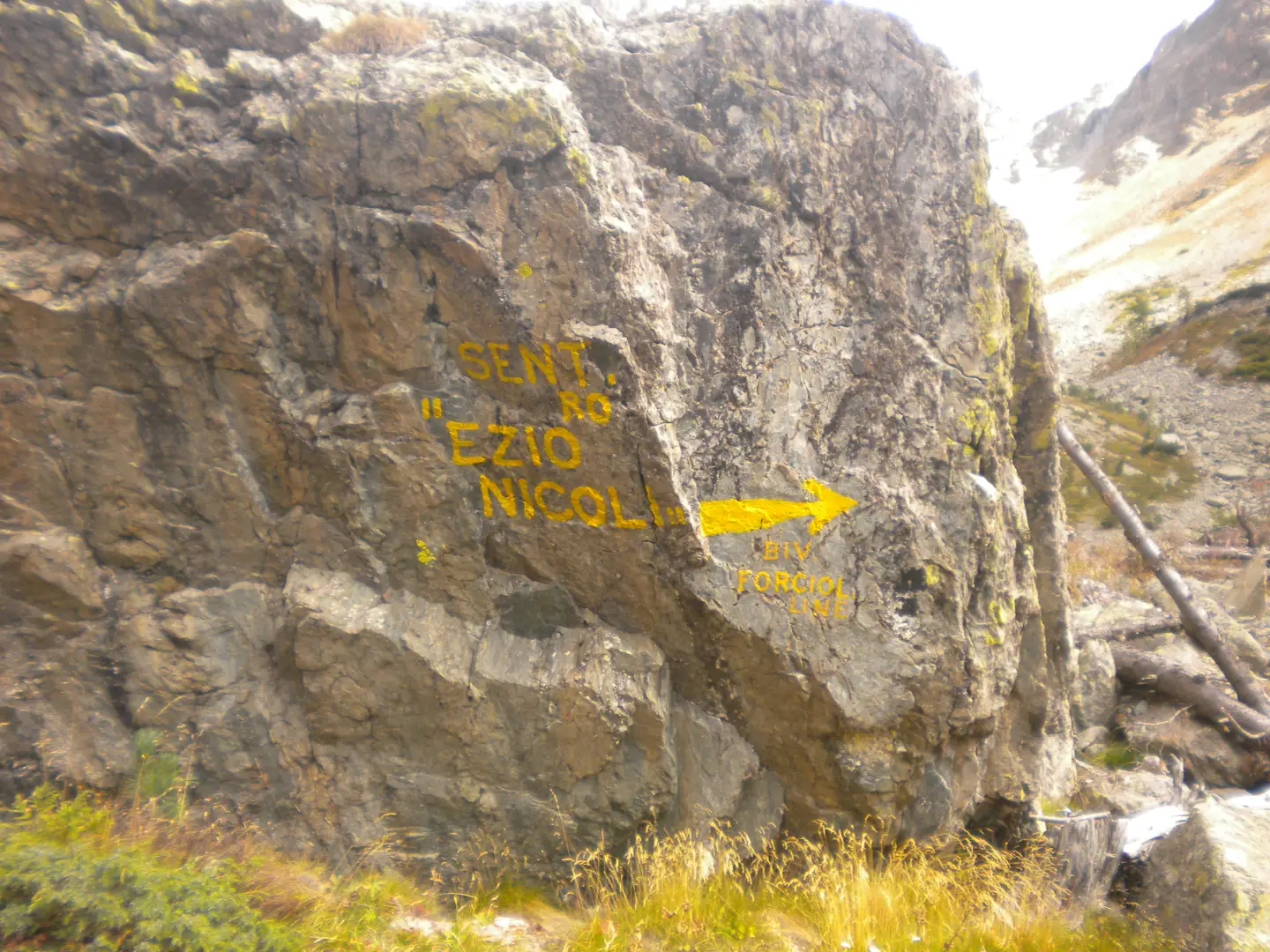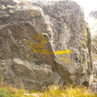 La partenza dell'itinerario è dalla frazione Castello di Pontechianale (Valle Varaita), sulla destra dell'ultimo tornante prima di raggiungere Castello parte una ripida strada sterrata che conduce ad una centrale idroelettrica, oltrepassata la centrale e lasciate sulla destra le indicazioni per il Rfugio Bagnour, si continua sulla strada sino ad arrivare a delle baite, oltrepassato un ponte di legno si prosegue in direzione del Rifugio Vallanta sino a trovare su una roccia sulla sinistra la scritta "Sentiero Ezio Nicoli - Monviso Sud" , poco più avanti sulla destra parte un sentiero con le indicazioni per il Bivacco Berardo, seguirlo e giunti ad un bivio prendere a destra seguendo i bolli gialli, si entra nel bosco e si prosegue sino ad uscirne ed arrivare ad un tratto dove il bosco è stato devastato dalla caduta di valanghe. Sempre seguendo i bolli gialli si intuisce ormai l'itinerario che dovremo seguire. Il sentiero punta in alto per entrare in un ripido canale roccioso, in alcuni tratti attrezzato con catene, che ci fà prendere rapidamente quota, usciti dal canale si prosegue sempre in mezzo a rocce e pietraie spostandoci verso sinistra si prosegue sino a passare sotto ad un roccione appoggiato alla parete. La salita è ora meno faticosa, si giunge ad un lago e con un ultimo strappo si arriva ad un piano dove è situato il bivacco. Il bivacco è molto confortevole e pulito, forse un pò in contrasto con l'ambiente severo in cui ci troviamo. L'indomani, visto la temperatura sotto lo zero e quindi la formazione di ghiaccio, decidiamo di evitare la discesa per l'itinerario di salita ma di traversare fino a raggiungere il Bivacco Berardo e scendere per il sentiero posto in posizione soleggiata. La traversata al Berardo a parte il primo tratto è tutta in leggera discesa, sempre molto ben segnalato con bolli gialli. Giunti al bivacco, effettuiamo una breve sosta e poi scendiamo su un sentiero alquanto ripido, ma facile sino a raggiungere il bivio del giorno precedente e quindi la strada che ci riporterà a Castello. L'ambiente in cui ci si trova è molto severo data la presenza di cime rocciose e l'assenza di vegetazione, ma molto bello e entusiasmante. L'itinerario è molto ben segnalato con bolli gialli, i tempi di percorrenza sono all'incirca: Castello al Bivacco Forciolline h 4. - Bivacco Forciolline al Bivacco Berardo h. 1 - Bivacco Berardo a Castello h. 3,30. La partenza dell'itinerario è dalla frazione Castello di Pontechianale (Valle Varaita), sulla destra dell'ultimo tornante prima di raggiungere Castello parte una ripida strada sterrata che conduce ad una centrale idroelettrica, oltrepassata la centrale e lasciate sulla destra le indicazioni per il Rfugio Bagnour, si continua sulla strada sino ad arrivare a delle baite, oltrepassato un ponte di legno si prosegue in direzione del Rifugio Vallanta sino a trovare su una roccia sulla sinistra la scritta "Sentiero Ezio Nicoli - Monviso Sud" , poco più avanti sulla destra parte un sentiero con le indicazioni per il Bivacco Berardo, seguirlo e giunti ad un bivio prendere a destra seguendo i bolli gialli, si entra nel bosco e si prosegue sino ad uscirne ed arrivare ad un tratto dove il bosco è stato devastato dalla caduta di valanghe. Sempre seguendo i bolli gialli si intuisce ormai l'itinerario che dovremo seguire. Il sentiero punta in alto per entrare in un ripido canale roccioso, in alcuni tratti attrezzato con catene, che ci fà prendere rapidamente quota, usciti dal canale si prosegue sempre in mezzo a rocce e pietraie spostandoci verso sinistra si prosegue sino a passare sotto ad un roccione appoggiato alla parete. La salita è ora meno faticosa, si giunge ad un lago e con un ultimo strappo si arriva ad un piano dove è situato il bivacco. Il bivacco è molto confortevole e pulito, forse un pò in contrasto con l'ambiente severo in cui ci troviamo. L'indomani, visto la temperatura sotto lo zero e quindi la formazione di ghiaccio, decidiamo di evitare la discesa per l'itinerario di salita ma di traversare fino a raggiungere il Bivacco Berardo e scendere per il sentiero posto in posizione soleggiata. La traversata al Berardo a parte il primo tratto è tutta in leggera discesa, sempre molto ben segnalato con bolli gialli. Giunti al bivacco, effettuiamo una breve sosta e poi scendiamo su un sentiero alquanto ripido, ma facile sino a raggiungere il bivio del giorno precedente e quindi la strada che ci riporterà a Castello. L'ambiente in cui ci si trova è molto severo data la presenza di cime rocciose e l'assenza di vegetazione, ma molto bello e entusiasmante. L'itinerario è molto ben segnalato con bolli gialli, i tempi di percorrenza sono all'incirca: Castello al Bivacco Forciolline h 4. - Bivacco Forciolline al Bivacco Berardo h. 1 - Bivacco Berardo a Castello h. 3,30.