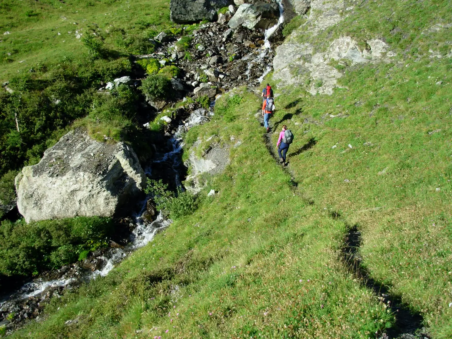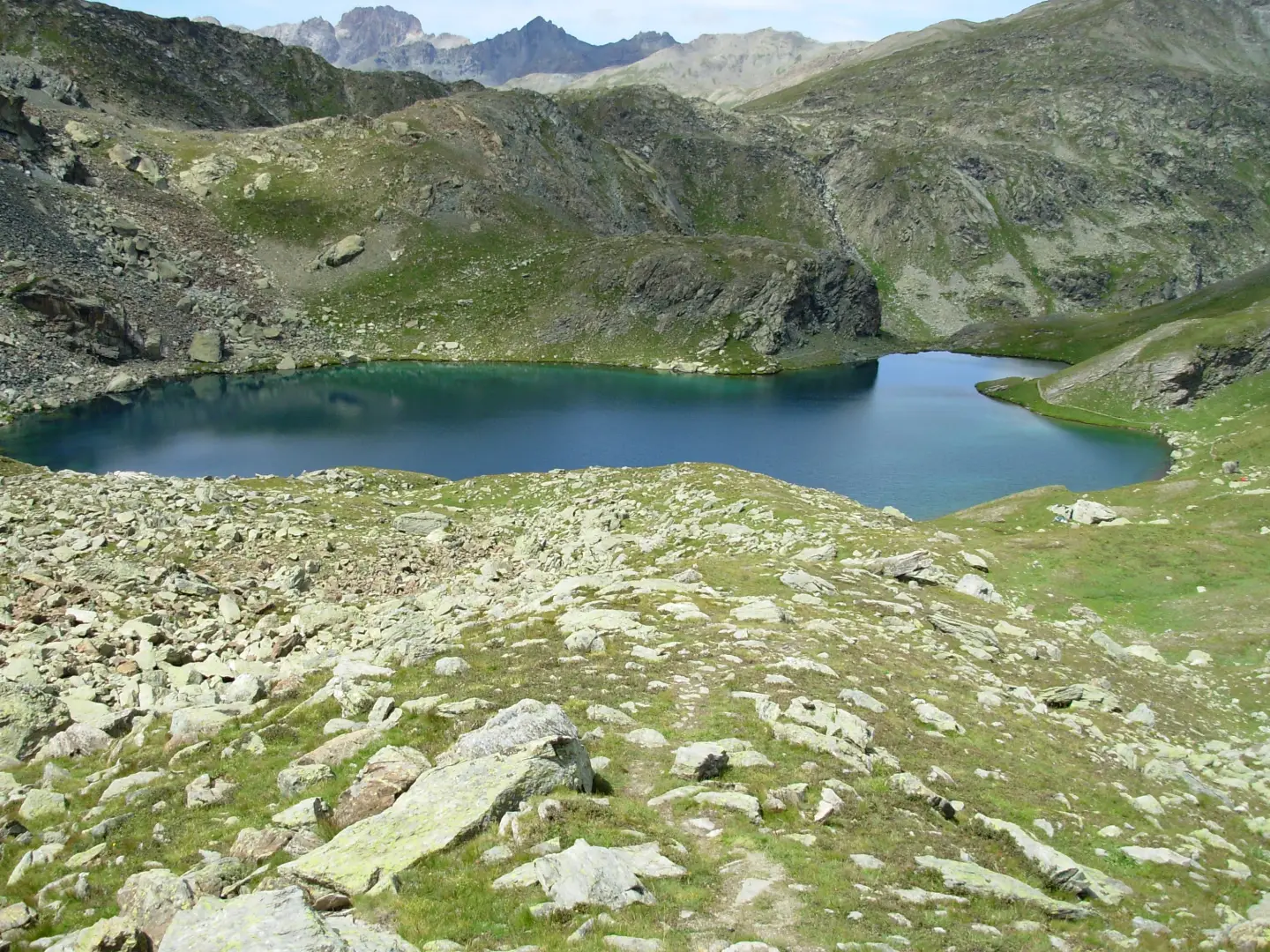 Da questo punto il sentiero scende sulla destra dell’emissario fino al bivio con il sentiero che da Chianale porta al Col Longet lungo la Valle Antolina.