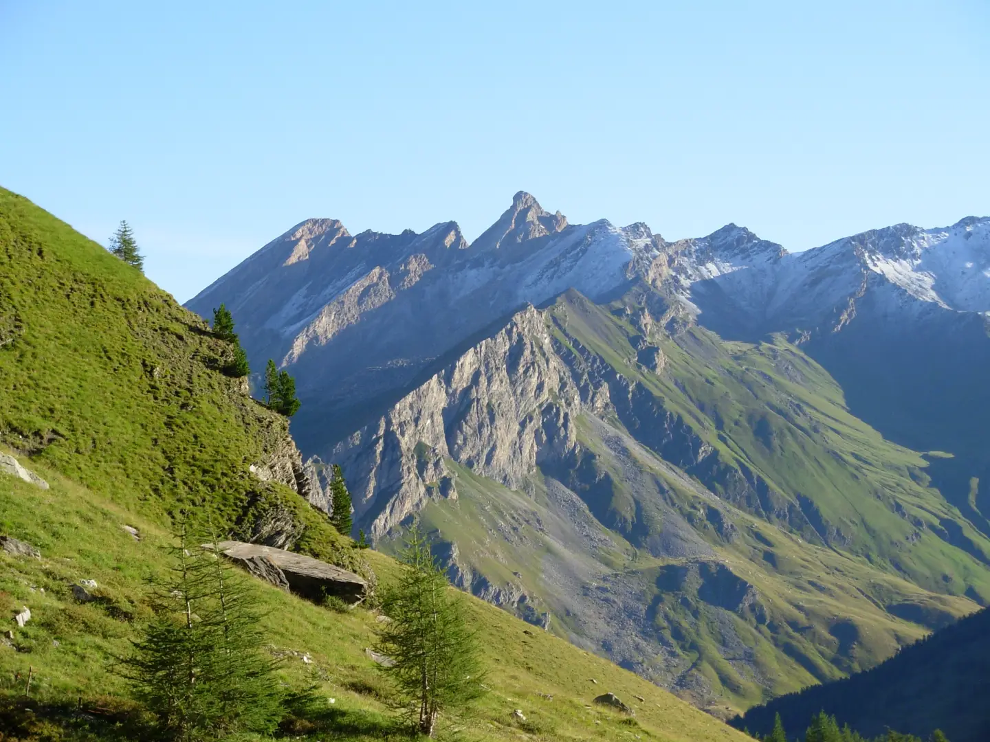 Si prosegue a mezza costa per pendii erbosi fino al Cumbal Tirabuc nei pressi del quale si trova la Grange Martinet ove è possibile rifornirsi di acqua ad una fontana.