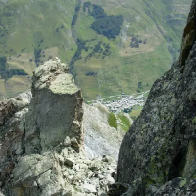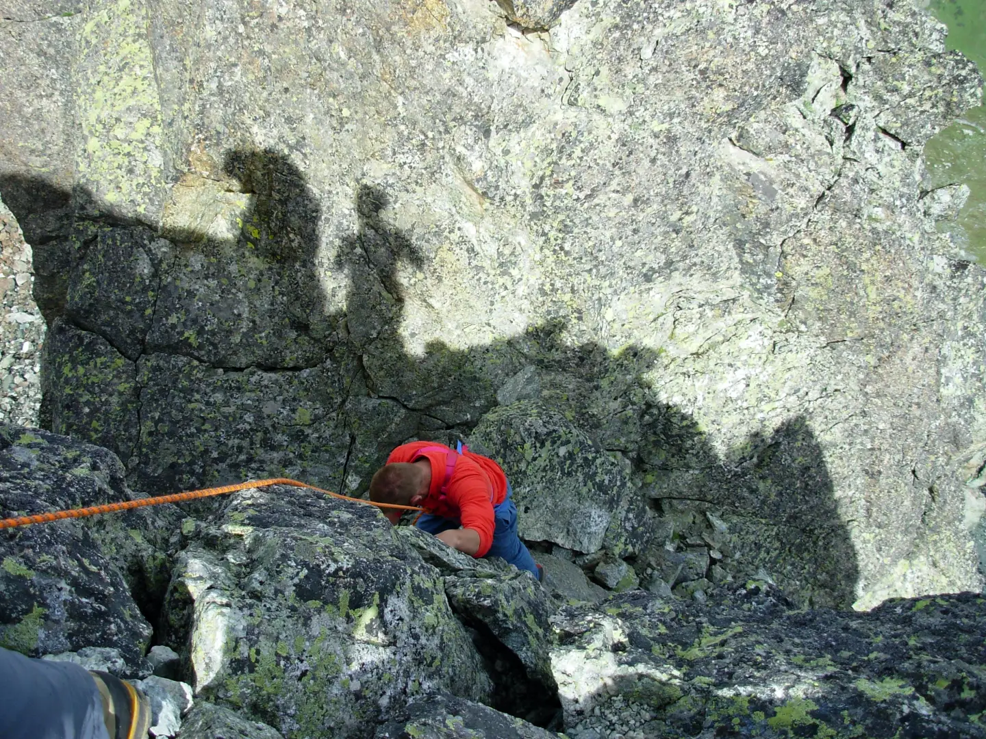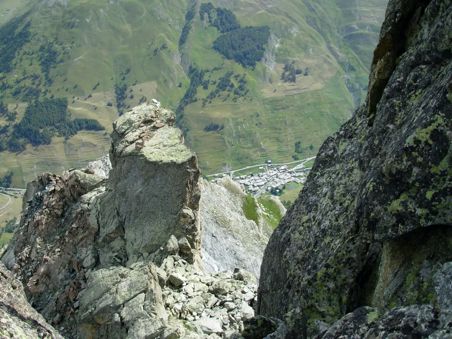 La discesa si può compiere sul lato opposto, affrontando un passaggio verticale che porta ad un camino sotto il quale si disarrampica senza eccessive difficoltà tra fessure e piccoli diedri. La parte alpinistica termina con il rientro al colle attraverso massi un po’ meno stabili. Dal colle si scende su un pendio scosceso e scivoloso di detriti instabili, stando ben attenti a non far cadere sassi che potrebbero travolgere i compagni di gita o eventuali escursionisti in salita verso il colle. Si attraversano quindi alcune zone di massi fino a raggiungere i dossi erbosi attorno alla conca del bellissimo lago Nero (2591m).