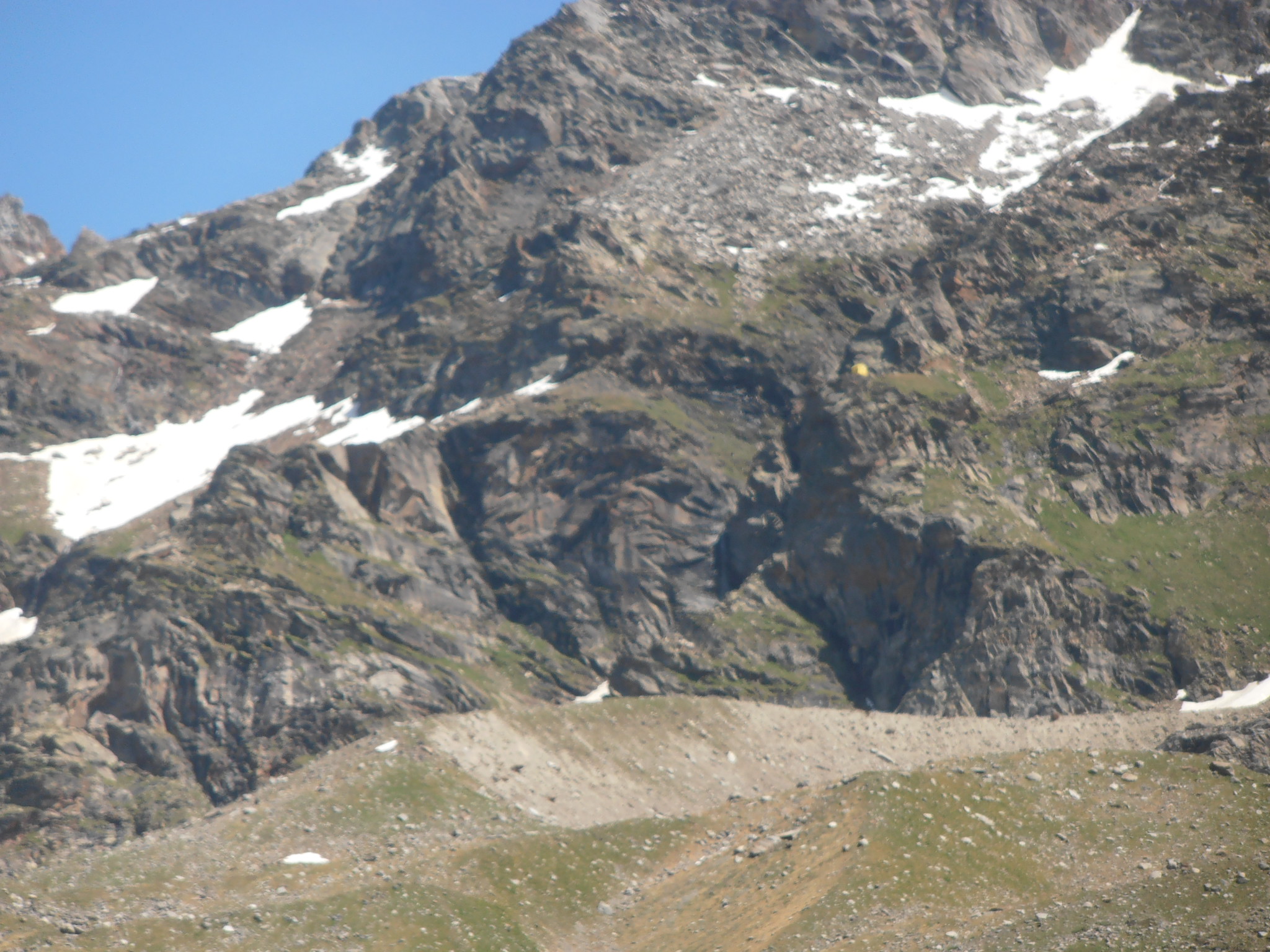 Bella gita anche se faticosa nel tratto sulla morena. Risalire tutta la valle di Cogne sino al parcheggio di Valnontey, dove termina la strada di pubblico accesso. Da qui bisogna risalire la vallata per un tratto su strada sterrata, poi al suo termine su un bel sentiero sempre all'ombra nel bosco. Si procede sempre con una leggera salita fino ad incontrare il primo bivio che porta al rifugio Vittorio Sella, ai casolari dell'Herbetet e al bivacco Leonessa. Lasciamo questo bivio proseguendo a sinistra. Proseguendo si arriva ad attraversare un robusto ponte e subito dopo si lascia a destra il sentiero per il bivacco Pol e Grappein. Proseguiamo sempre a sinistra fino a raggiungere l'inizio della morena, il tratto più faticoso dell'itinerario. Si incomincia a salire incontrando un altro bivio per il bivacco Money e il bivacco Martinotti. Si sale sul filo della morena fin quasi al termine dove il sentiero scende di lato in una conca, dove si vede l'isolotto roccioso su cui sorge il bivacco. Vi è ancora tanta neve, bisogna fare attenzione perchè in alcuni punti al di sotto scorre il fiume e potrebbe cedere la crosta superficiale. il panorama è stupendo, la nord della Becca di Gay, le seraccate del ghiacciaio della Tribolazione dove sullo sperone che le separa si intuisce l'itinerario di salita per i bivacchi Pol e Grappein fanno da contorno al bivacco, di fronte si intravede il tetto del bivacco Leonessa e in basso tutta la Valnontey sino a Cogne. Forse il nome Gran Paradiso non è stato dato a caso. Spettacolari i distacchi di ghiaccio dai seracchi. Discesa per lo stesso itinerario, molto utili i bastoncini. Abbiamo trovato il bivacco in disordine, coperte non piegate, parecchie bottiglie di plastica, la mattina dopo prima di ripartire abbiamo dato una sistemata al meglio e una bella ramazzata al pavimento. Tempo di salita dal parcheggio di Valnontey circa 4 ore e 30, giornata molto calda che sopratutto nel tratto su morena rende tutto più faticoso.Bella gita anche se faticosa nel tratto sulla morena. Risalire tutta la valle di Cogne sino al parcheggio di Valnontey, dove termina la strada di pubblico accesso. Da qui bisogna risalire la vallata per un tratto su strada sterrata, poi al suo termine su un bel sentiero sempre all'ombra nel bosco. Si procede sempre con una leggera salita fino ad incontrare il primo bivio che porta al rifugio Vittorio Sella, ai casolari dell'Herbetet e al bivacco Leonessa. Lasciamo questo bivio proseguendo a sinistra. Proseguendo si arriva ad attraversare un robusto ponte e subito dopo si lascia a destra il sentiero per il bivacco Pol e Grappein. Proseguiamo sempre a sinistra fino a raggiungere l'inizio della morena, il tratto più faticoso dell'itinerario. Si incomincia a salire incontrando un altro bivio per il bivacco Money e il bivacco Martinotti. Si sale sul filo della morena fin quasi al termine dove il sentiero scende di lato in una conca, dove si vede l'isolotto roccioso su cui sorge il bivacco. Vi è ancora tanta neve, bisogna fare attenzione perchè in alcuni punti al di sotto scorre il fiume e potrebbe cedere la crosta superficiale. il panorama è stupendo, la nord della Becca di Gay, le seraccate del ghiacciaio della Tribolazione dove sullo sperone che le separa si intuisce l'itinerario di salita per i bivacchi Pol e Grappein fanno da contorno al bivacco, di fronte si intravede il tetto del bivacco Leonessa e in basso tutta la Valnontey sino a Cogne. Forse il nome Gran Paradiso non è stato dato a caso. Spettacolari i distacchi di ghiaccio dai seracchi. Discesa per lo stesso itinerario, molto utili i bastoncini. Abbiamo trovato il bivacco in disordine, coperte non piegate, parecchie bottiglie di plastica, la mattina dopo prima di ripartire abbiamo dato una sistemata al meglio e una bella ramazzata al pavimento. Tempo di salita dal parcheggio di Valnontey circa 4 ore e 30, giornata molto calda che sopratutto nel tratto su morena rende tutto più faticoso.