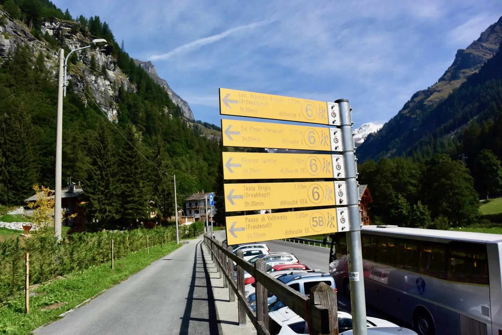 Lasciare l’autostrada al casello di Pont-Saint-Martin. Dopo circa 100 metri, svoltare a destra, superare un semaforo e proseguire per circa 600 metri fino al bivio per Gressoney. Entrare nell’abitato di Pont-Saint-Martin e, dopo 1,2 chilometri, svoltare a destra imboccando la strada regionale in direzione della Valle di Gressoney. Seguire la risalendo l’intera valle per circa 30 chilometri, attraversando i centri abitati di Lillianes, Fontainemore, Issime, Gaby e Gressoney-Saint-Jean . Superato quest’ultimo, proseguire ancora per pochi minuti fino a raggiungere la località di Tschemenoal, dove si trova un parcheggio gratuito (🅿️) poco oltre la frazione, sul lato della strada.