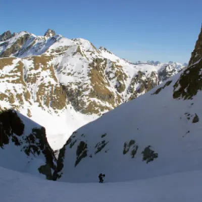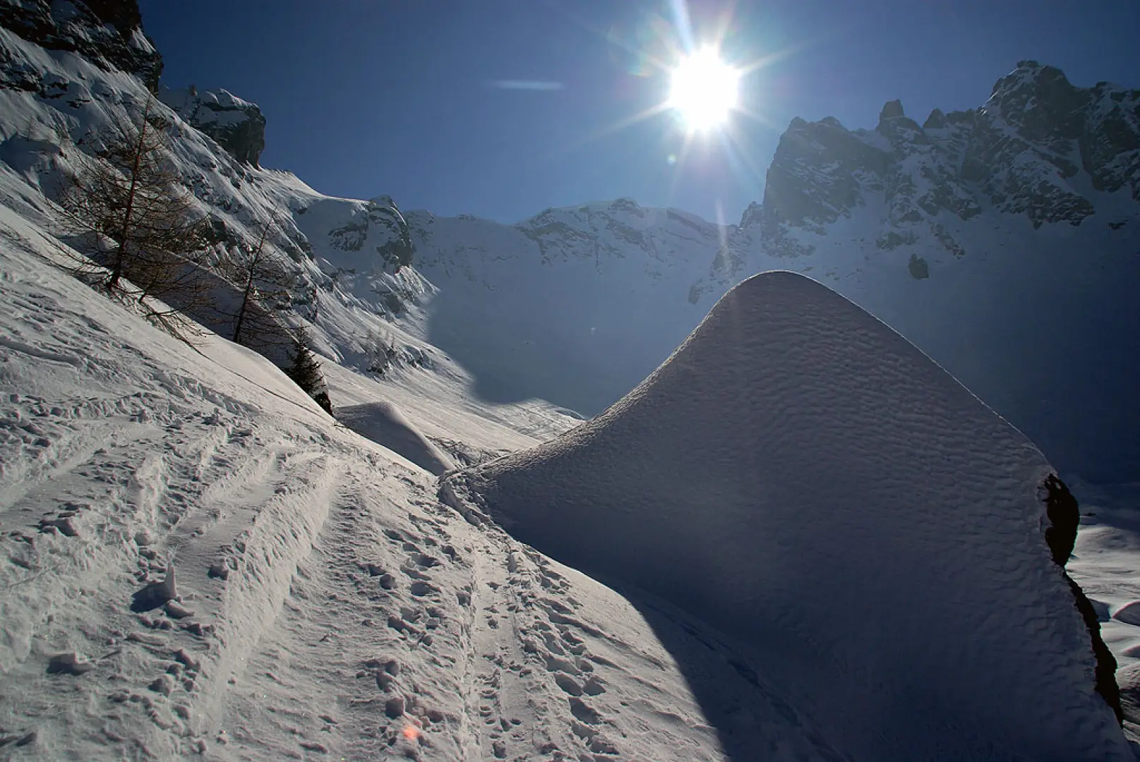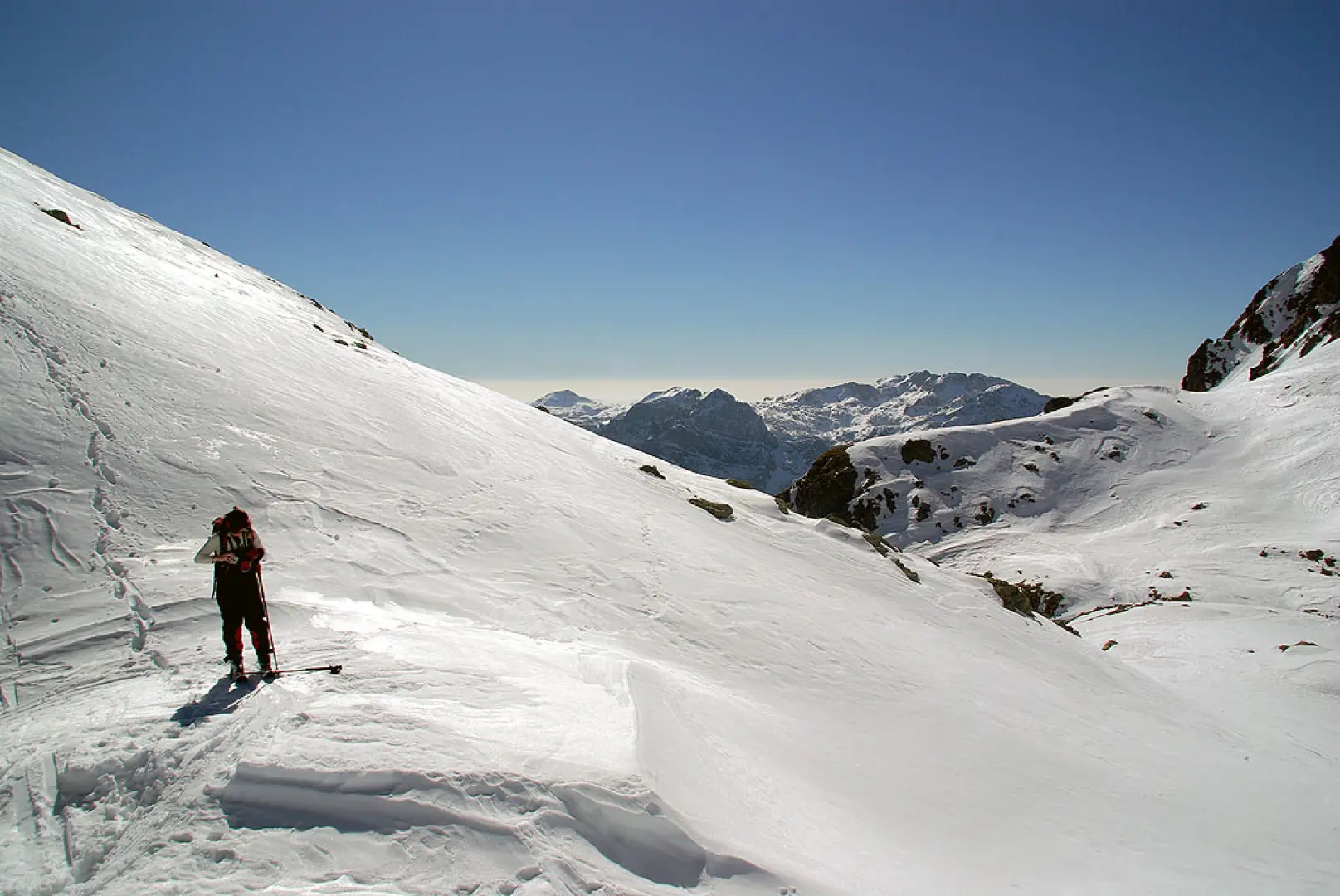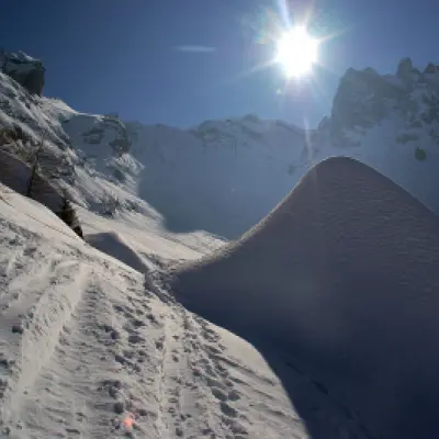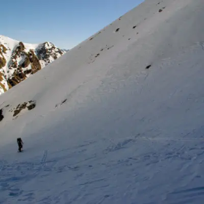 Gita poco conosciuta, se non ai locali, seguendo il percorso descritto. L'esposizione molto varia (ma solo nord in discesa: polvere!!), la necessità di molta neve ben assestata, la perdita di 150m di dislivello all'andata e l'incertezza della percorribilità del tratto chiave della discesa la rendono un percorso molto speciale.