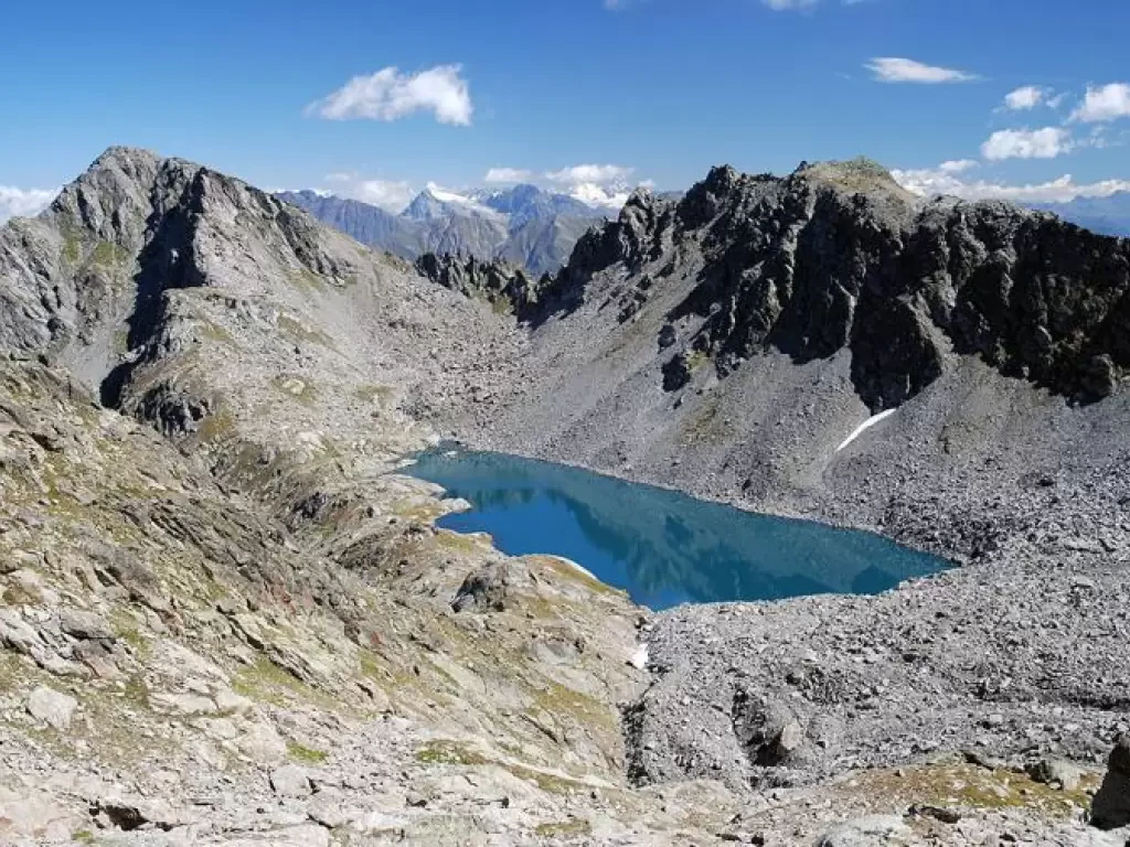 Bel lago incastonato tra le bastionate rocciose della Punta Fricolla e del Mont Blachet.