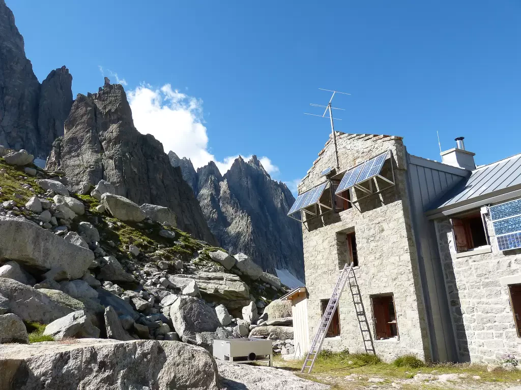 La Almagellerhütte sorge a 2.894 metri di quota, su un terrazzo panoramico che domina la valle di Saas e offre...