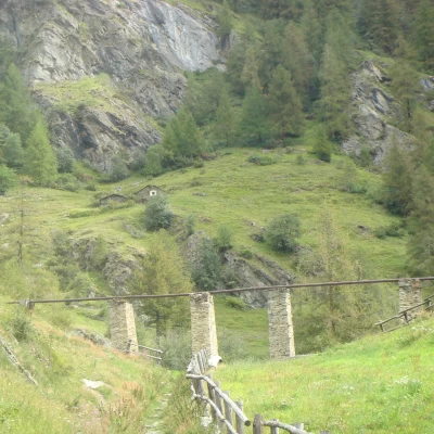 Go back on path no. 1 until, at the bend before the N.S. della Neve chapel, turn onto path no. 2, which follows the road past a couple of alpine pastures and a few houses before turning right and starting to descend in steep hairpin bends to Vaud (400m difference in altitude). You return to Glacier on the road.