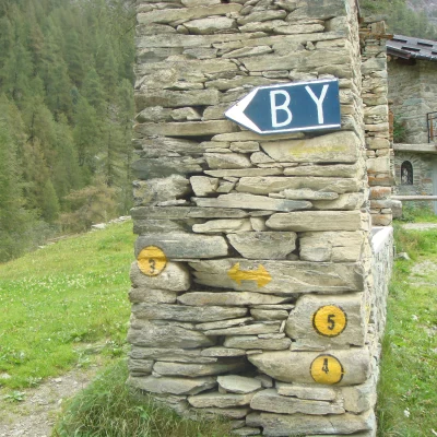 From the Glacier car park, turn back and start climbing up the path, then mule track, following signs 3,4 and 5. The mule track leads us, with a continuous incline, to Pont (1681m) and finally to the Chapel of By (1904m). From here, after stopping to look at the By lake, take trail no. 4 until you reach the farmstead at By.