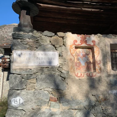0h00' The route begins in Piazza Aosta, in front of the characteristic Saint-Vincent Town Hall building you will find a flight of steps leading up Via S. Cretier, a small pedestrian alley that quickly leads to Via E. Chanoux. Cross the main street of the spa town procecing onto Via J.B. Perret, which soon leads to Via Roma; cross the latter and, to the left of a fountain ⛲, take the narrow Via de Clos ⛲ that climbs up through the blocks of flats to reach Viale IV Novembre. Cut across the bend in the avenue onto a lane and, having crossed the road at a pedestrian traffic light, go up a path through the village of Ecrivin to reach Via Monte Bianco. Turn right, then immediately left to go up Via G. Charrière at the end of which the path marked by a signpost begins, leading to Capella dei Partigiani 2h45min.