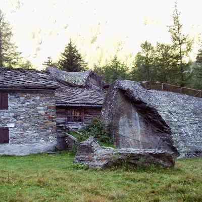 0h00' Dal parcheggio di Valnontey (1666m) si continua sulla strada alla destra orografica del torrente, si oltrepassa il cartello informativo che segnala l'inizio del segnavia 22 e tutte le sue varianti, si supera il Camping Gran Paradiso e si entra nel bosco. Dopo pochi minuti di cammino si incrocia la deviazione a sinistra, segnavia 22A per Plan de la Tornetta, si passa accanto ad una presa d'acqua e si giunge al caratteristico raggruppamento di David, costruito attorno a due roccioni. La sterrata passa accanto ad un ponte (vendita di prodotti caseari sulla sponda opposta) e si dirige alla radura dove sorge il villaggio di Vermiana - Vermianaz (1729m, 0h30').