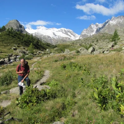 Si percorre il bel sentiero nel bosco con magnifiche vedute (che più si sale e più diventano belle) sul Rutor e sulla Grande Rousse, si supera un alpeggio diroccato per arrivare ad un ripiano di pascoli percorso da un torrentello (Alpage Glacier nelle vicinanze) per lasciarlo subito e risalire all’altrettanto bel ripiano delle Baraques du Fond.