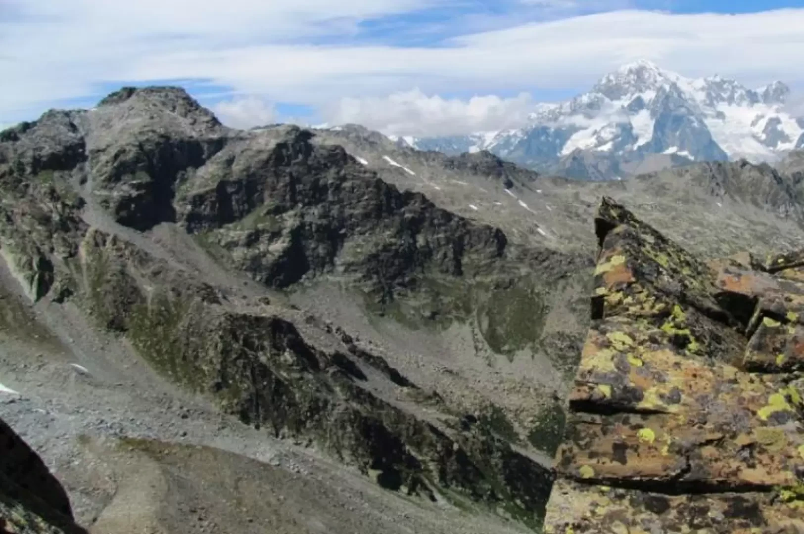 E’ più conveniente salire i pendii detritici in direzione della cresta NE del sovrastante monte Pit, ai piedi del quale si raggiunge la stretta finestra del colle (non valicabile) che si apre in fronte al Monte Bianco.