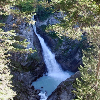 Proseguire ora con una salita un po' più impegnativa, superato un caratteristico ponticello in pietra si raggiunge in breve l'isolato casolare di Parcet (1760m, 0h20'). Si fuoriesce dal bosco e si procede per un breve tratto a mezza costa poi, dopo un paio di svolte, si attraversa un altro ruscelletto e si entra nuovamente nel bosco sino ad arrivare ad un ponte in legno ove diparte il sentiero per la seconda cascata. Proseguire sul sentiero principale ed iniziare una lunga serie di svolte sino ad incontrare la palina segnaletica (1996m, 1h10') che indica la terza cascata: per chi lo desiderasse con una breve deviazione in pochi minuti si raggiunge un bel punto di vista su di essa.
