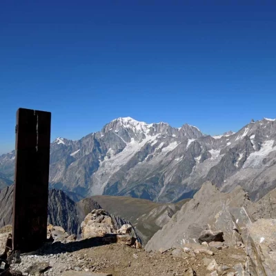 Si arriva così sulla cima dove finalmente appare la catena del Bianco in tutto il suo splendore.