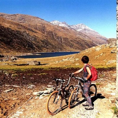 Il percorso, ad andata e ritorno, è piuttosto frequentato e si svolge su una pista di servizio pianeggiante che segue il lato occidentale del lago. Dapprima si attraversa la diga sul piano stradale superiore, quindi si svolta a sinistra su una breve rampa asfaltata, che conduce allo sterrato di servizio degli alpeggi al termine del lago. Dopo una pedalata di circa 10 km si attraversa l'immissario del lago su di un ponte ben ricostruito e si arriva all'Alpe Pian del Nido 1945m, dove è possibile riposarsi in locali adibiti a bivacco. Il fondovalle è dominato dal ghiacciaio di Ponciagna che culmina nel Pizzo Stella 3163m. Cartelli di indicazione turistica evidenziano possibili estensioni a piedi della gita: salita al Passo di Lei 2660m (con lunghissima discesa a Chiavenna) e salita al Passo Angeloga 2391m (con altrettanto lunghissima discesa a Campodolcino). Ritorno, come detto, sullo stesso percorso.