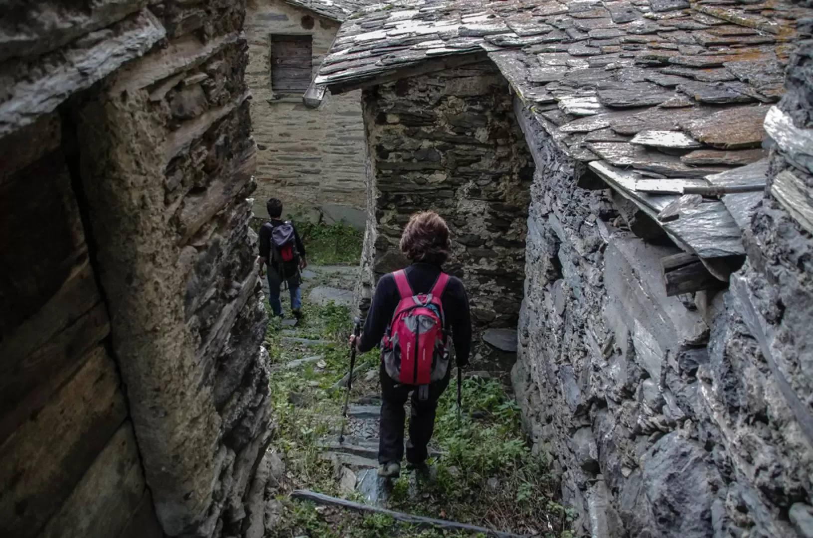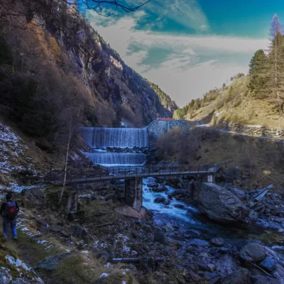 0h00' Dal parcheggio in località Vassalini 950m si prosegue sulla carrozzabile in direzione del centro di Chiesa Valmalenco percorrendo le Vie Rusca, Funivia, Bernina, Sigismund e V°Alpini, da ultimo seguendo le indicazioni stradali per Primolo. In Via V°Alpini, sul lato destro, imboccare la vecchia mulattiera per Primolo che risale un bel bosco di conifere con una lunga serie di tornanti. Si ritorna sulla carrozzabile a poche decine di metri dalla piccola frazione (Primolo 1274m); passando attraverso la raccolta piazza della parrocchiale, si esce dall'abitato in direzione della pineta, verso l'imbocco del ramo di Valmalenco diretto a Chiareggio. Dopo un'area giochi/tennis/bocce la larga mulattiera inizia il lungo traverso che segue in quota il corso del torrente Mallero; si passa a monte (molto ben visibile dal versante di ritorno) dell'area del "Giuell", ormai solo quanto rimane di un antico sito di cava di lastre si serpentino, e si attraversano i vari canaloni che scendono dalla soprastante cresta Pizzo di Primolo - Monte Braccia. Poco dopo le segnalazioni verso sinistra del sentiero per l'Alpe Zocca, il nostro percorso attraversa il torrente su di un ponte in prossimità di alcune cascate; si prosegue sull'altra sponda lungo una pista sterrata e - poco prima della piana di Sabbionaccio - si sale tramite un ripido sentierino sulla carrozzabile Chiesa - Chiareggio. Ci si trova in località San Giuseppe 1435m e si va a percorrere la strada asfaltata che sale ai Barchi (utile usufruire delle scorciatoie, che eliminano qualche monotono tornante), lasciando sulla destra la cabinovia per il Palù, in località Prati Pedrana. Ai Barchi 1698m si attraversa il percorso dell'impianto di risalita (proprio in corrispondenza delle strutture di un cambio di direzione) e si scende un poco verso destra lungo un sentierino che entra nel bosco vicino ad alcune baite ristrutturate. La traccia scende lungo la foresta, con anche qualche tratto ripido, fino a confluire in una pista forestale nei pressi di una moderna baita isolata; si segue la strada in salita fino ad una palina (localtà Piazzetto 1679m) che indirizza verso Vallascia. Dopo una traversata nel bosco si abbandona il sentiero che scende ripido deviando a sinistra sulle piste sterrate di una cava: la si lascia alle spalle dove il percorso incontra un terrazzo erboso con alcune antiche baite. Qui si ritrova il sentiero che comodamente si porta fra i pascoli a collegare alcuni nuclei di ultriori baite e fienili (presso la contrada Albareda si trova una interessante palestra di roccia); la discesa prosegue oltrepassando un incassato vallone e quindi - costeggiato un giovane lariceto - raggiunge un recente sterrato in contrada Curlo 1050m. Una serie di vicoli e alcune tortuose scalinate consentono di attraversare l'abitato indirizzando sulla strada provinciale nei pressi della stazione di partenza della funivia. Da qui - in breve - al parcheggio.