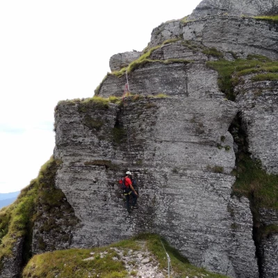 Un'ulteriore possibilità per raggiungere la cima - frequentatissima - del più famoso punto panoramico delle prealpi ticinesi. Si tratta di una brevissima ferrata tecnicamente facile che assume interesse per la varietà del paesaggio che attraversa: scorrendo precisamente sulla linea di confine fra Italia e Svizzera, domina sulla sinistra i vasti pascoli della Val d'Intelvi e sulla destra il precipizio a torri rocciose stratificate affacciato sul Lago di Lugano.