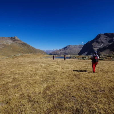 Escursione molto frequentata in ogni stagione lungo una vallata che passa da una copertura di bellissimi boschi di pino nero agli ampi spazi sommitali di estesi pascoli: il tutto sparso di numerosi laghi e laghetti, dominati da guglie rocciose e, come sfondo, i ghiacciai del gruppo del Bernina.