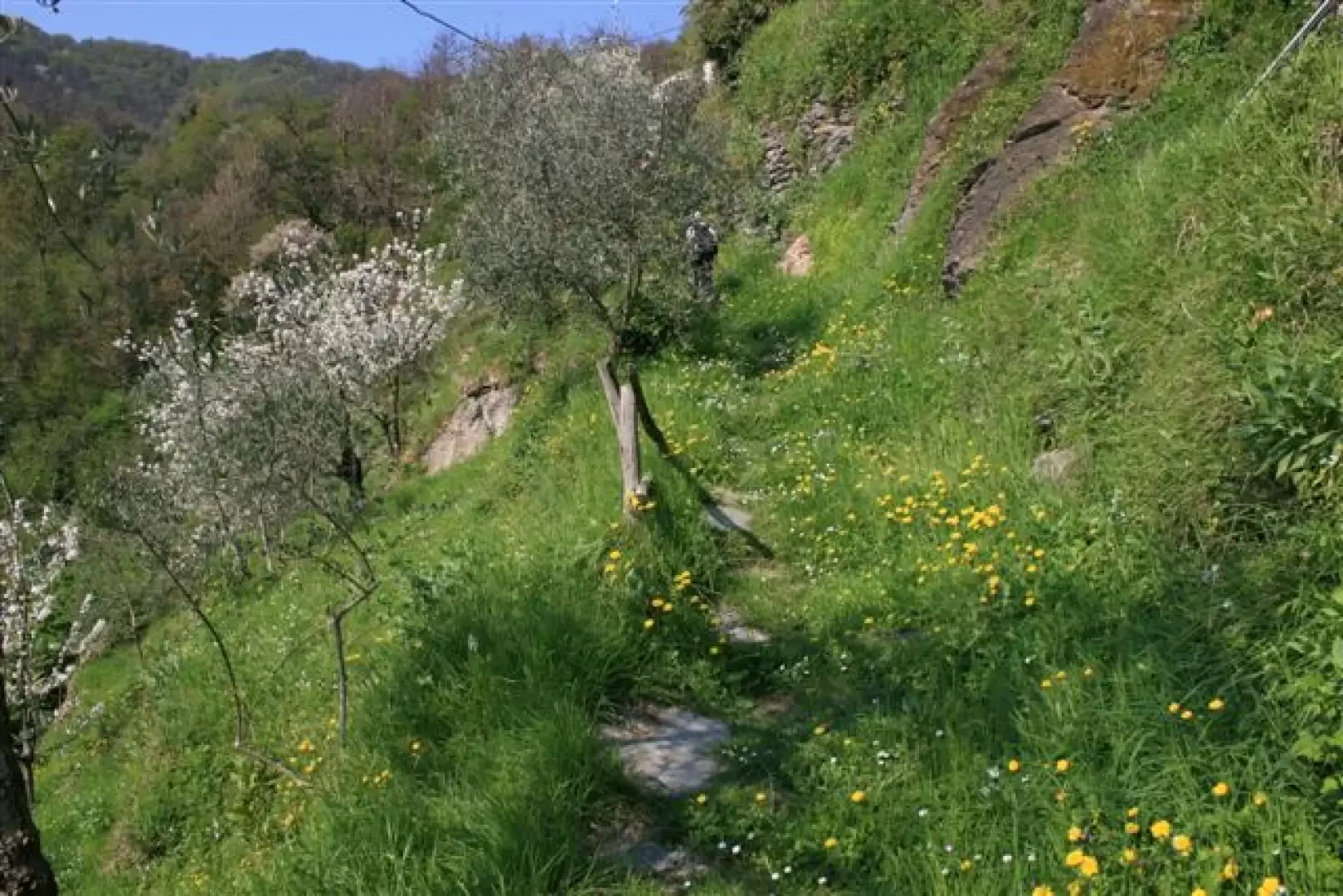 Il sentiero (2 rombi rossi vuoti, 600 m dislivello, percorrenza 2h\2h30m tot) si innalza sfiorando alcune case e a volte la strada, in primavera ci sono colori molto riposanti alla vista…